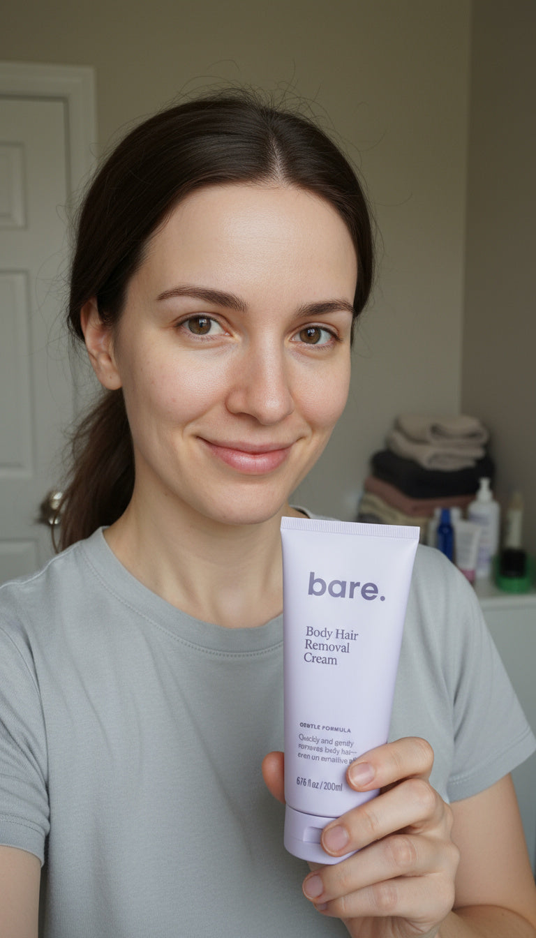 The Bare® Duo uses a gentle depilatory formula that breaks down the protein structure of unwanted hair at the surface level. Simply apply a thick layer with the included spatula, wait 5 minutes, then remove to reveal smooth, hair-free skin. The formula is enriched with shea butter and vitamin E to moisturize while it works, leaving skin soft and nourished—not dry or irritated like traditional hair removal creams.